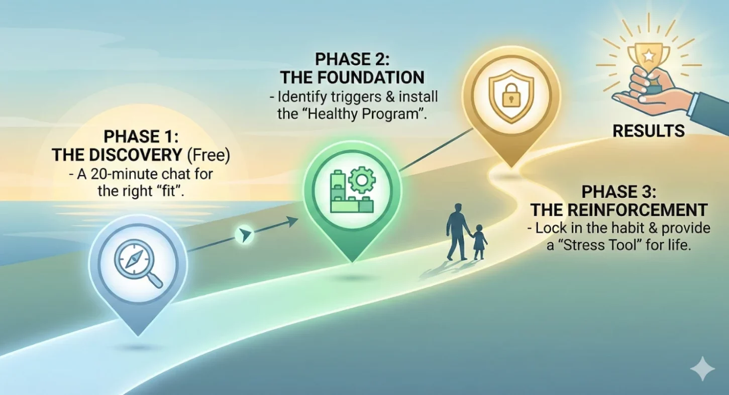 This is where the real work begins. Together we explore what's driving the habit, whether that's stress, boredom, anxiety, or something else entirely and build a plan that's tailored specifically to you. You'll leave with practical tools to start using straight away.